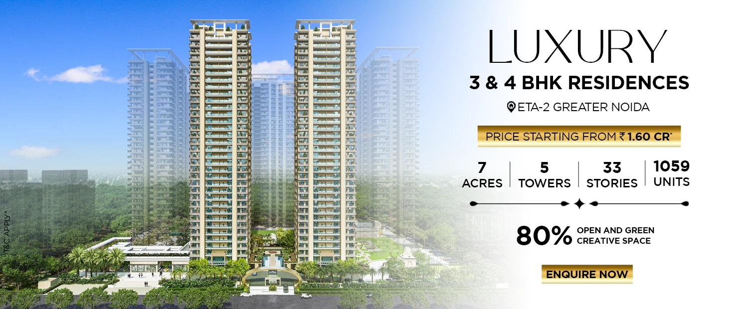 This is an iconic residential apartment project with an unbeatable pre-launch price offer like never before. The project enjoys a prime location advantage, excellent connectivity and a modern lifestyle, appealing the home buyers who seek luxury living space amidst nature’s serenity in a well-connected area of Greater Noida.
